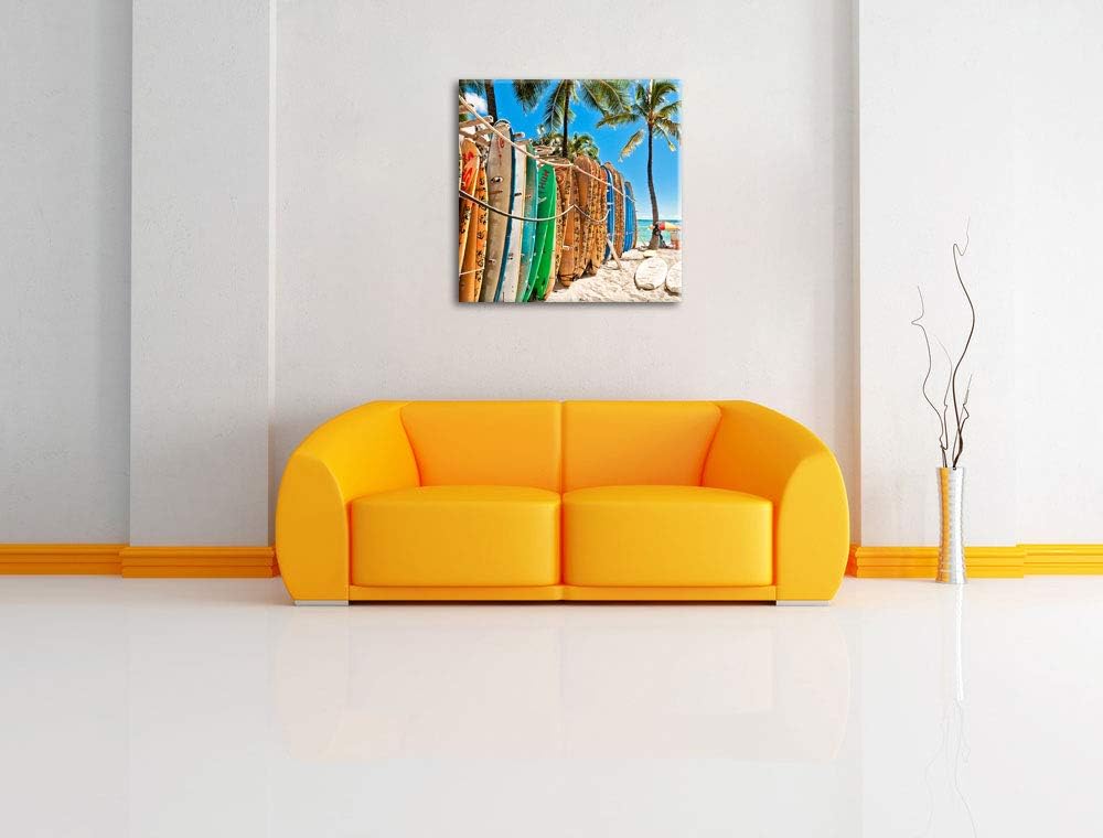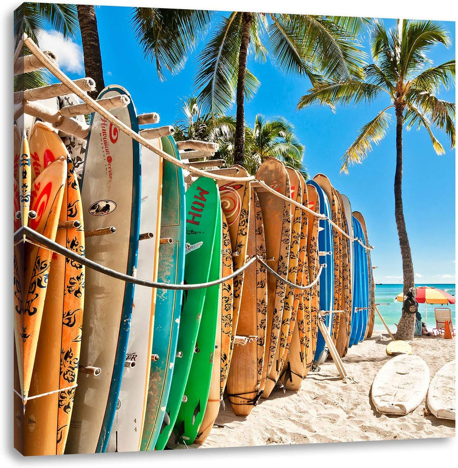 Surfboards am Strand, Format: 70x70 auf Leinwand, XXL riesige Bilder fertig gerahmt mit Keilrahmen,