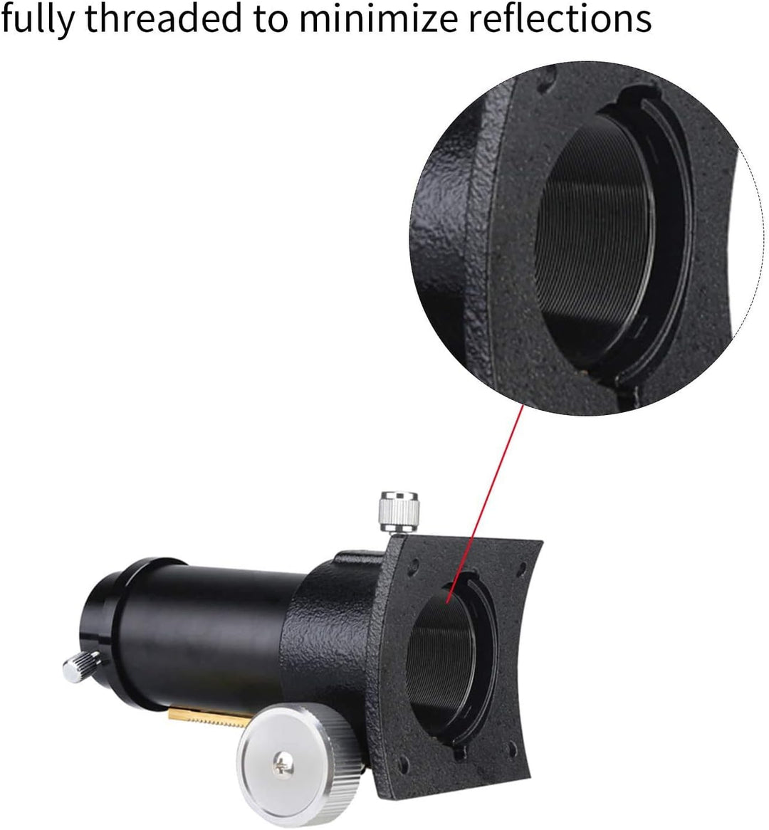 • Das Innere des Teleskopfokussierers ist vollständig eingefädelt; um Reflexionen zu minimieren