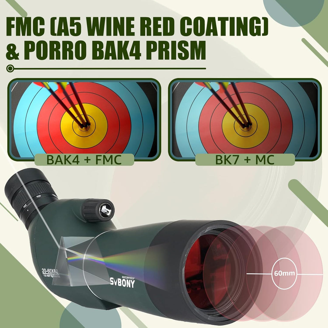 - Variable 20× bis 60× Vergrösserung und dynamisches Linsenfokussierungssystem – erleichtert das Heranzoomen; Perfekt zum Bogenschiessen; Zielbeobachtung; Vögel beobachten; Tierbeobachtung; Camping; Landschaft; Sport im Freien; Mondbeobachtung usw