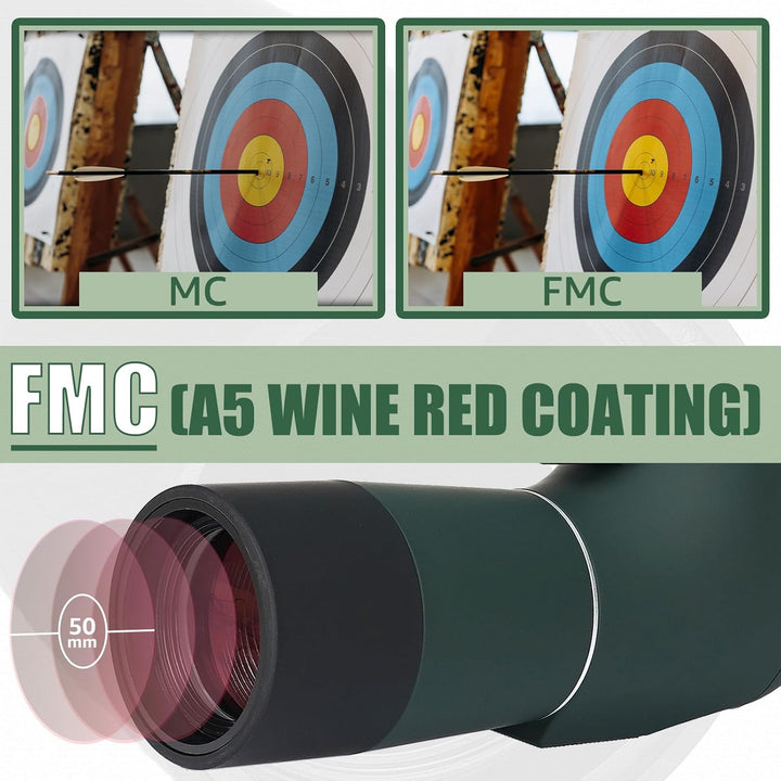 - Die FMC (weinrote Beschichtung) und das BAK4 Prisma sorgen für eine hohe Durchlässigkeit für eine hellere und klarere Blende; detaillierte und kontrastreiche Bilder und ein einfaches Beobachtungserlebnis