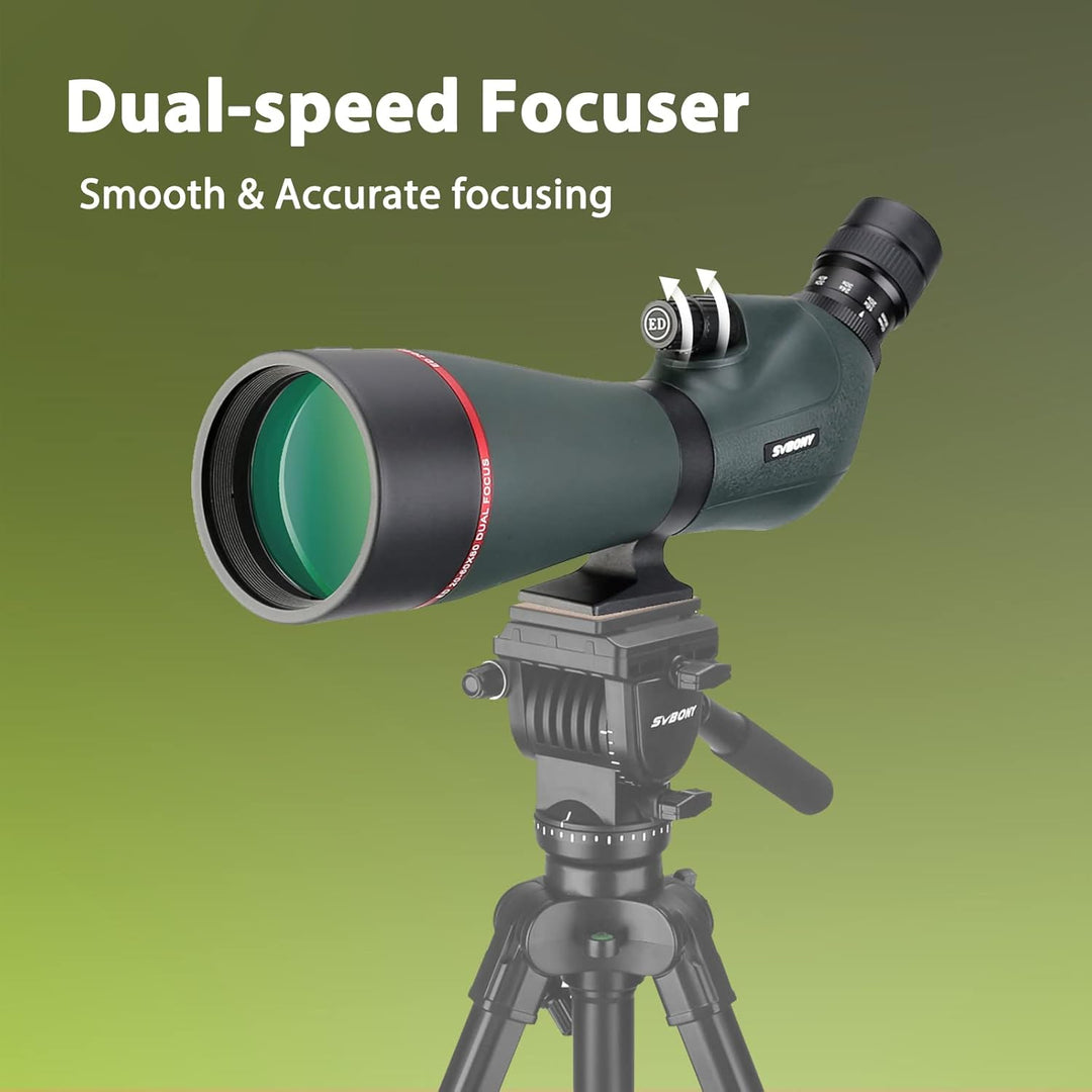 - Austauschbares 1,25 Zoll Astronomie Okular; Das Spektiv SV406P verfügt über einen 1,25 Zoll Okularanschluss; den Sie durch ein astronomisches Okular wie ultraflache Okulare ersetzen können