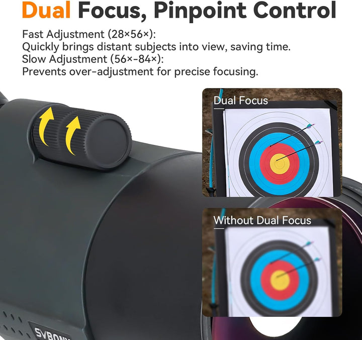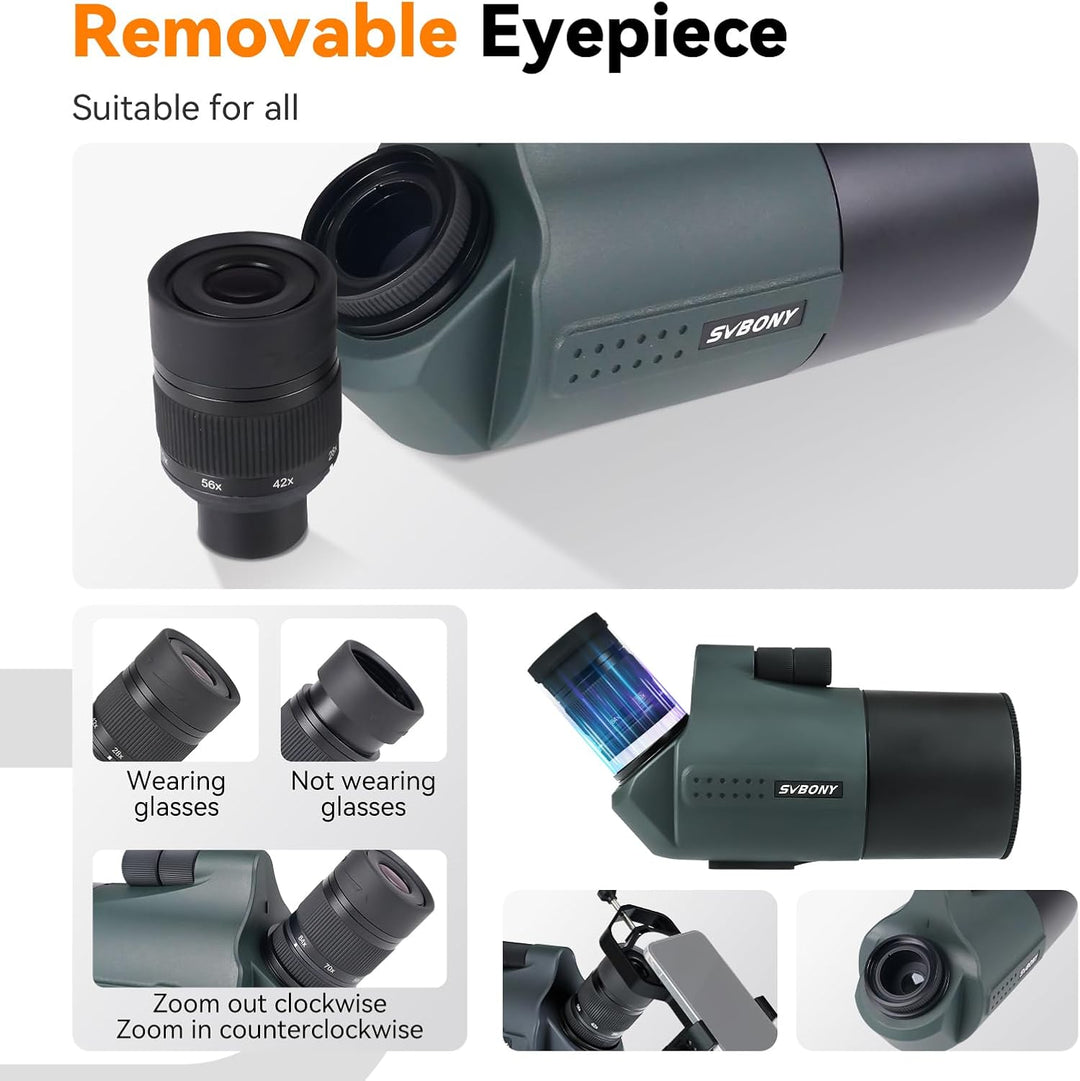 - Himmlische und terrestrische Beobachtung: Svbony SV41Pro Spektiv für Vogelbeobachtung ist ein Allround-Spektiv, das sich für die Vogelbeobachtung, die Wildtierbeobachtung, die Landschaftsbeobachtung sowie die Beobachtung von Mond und Planeten eignet