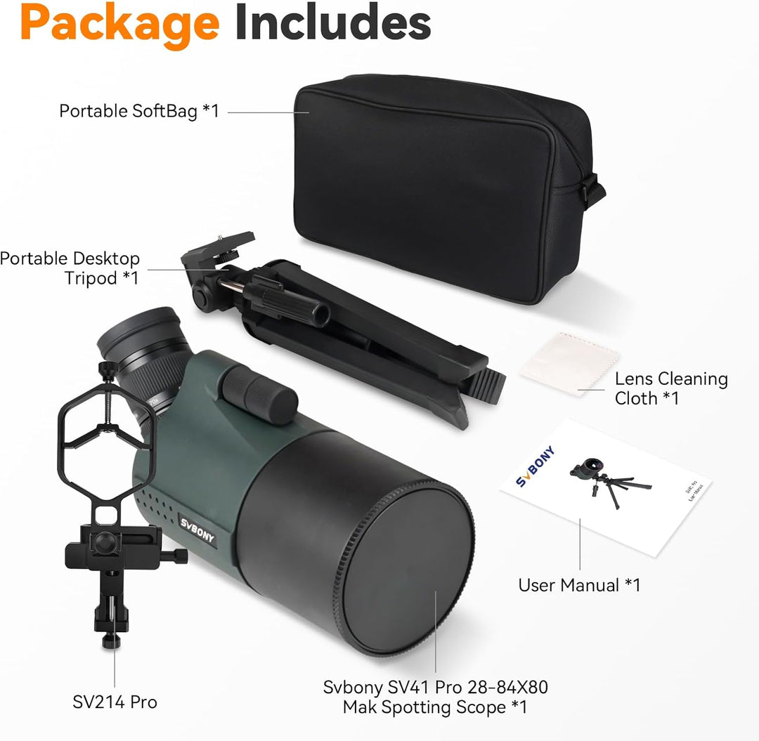 - Viele spielbare Kombinationen: Fotografieren mit einem Klick: Svbony SV41PRO Spektiv verfügt über ein abnehmbares 1,25-Zoll-Okular; Kompatibel mit der Svbony SC001- oder SC311-WLAN-Kamera(nicht im Lieferumfang enthalten), für stabilere Aufnahme von