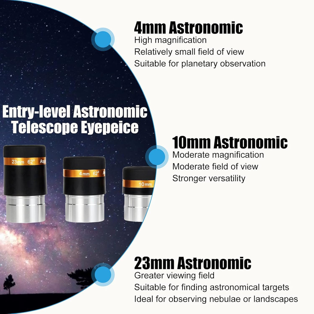 - Okular-Set; 4mm 10mm und 23mm Okular; niedrige mittlere und hohe Vergrösserung; erfüllen Ihre unterschiedlichen Anforderungen und eignen sich perfekt für die Beobachtung der Mondoberflächen-Binärdateien der Mondsternhaufen