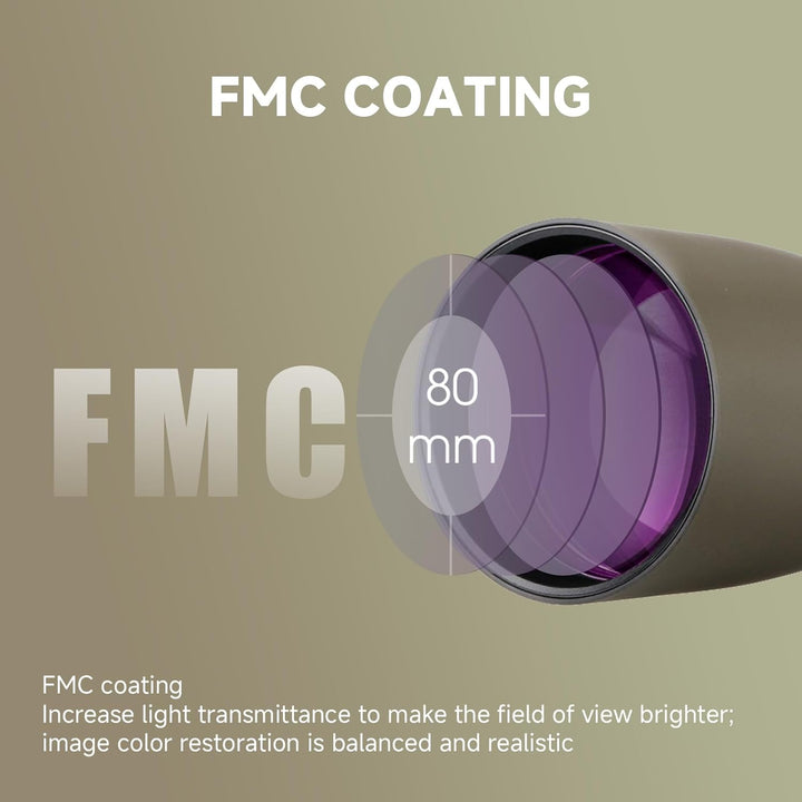 - Helles Sichtfeld; Das grosse 80-mm-Objektiv maximiert die Lichtdurchlässigkeit für hellere; klare Bilder; Einfacher Zoom auf das 60-fache mit einem weiten Sichtfeld von 31 m - 14,8 m / 1000 m; Schliessen Sie die Fokusentfernung von 10 m
