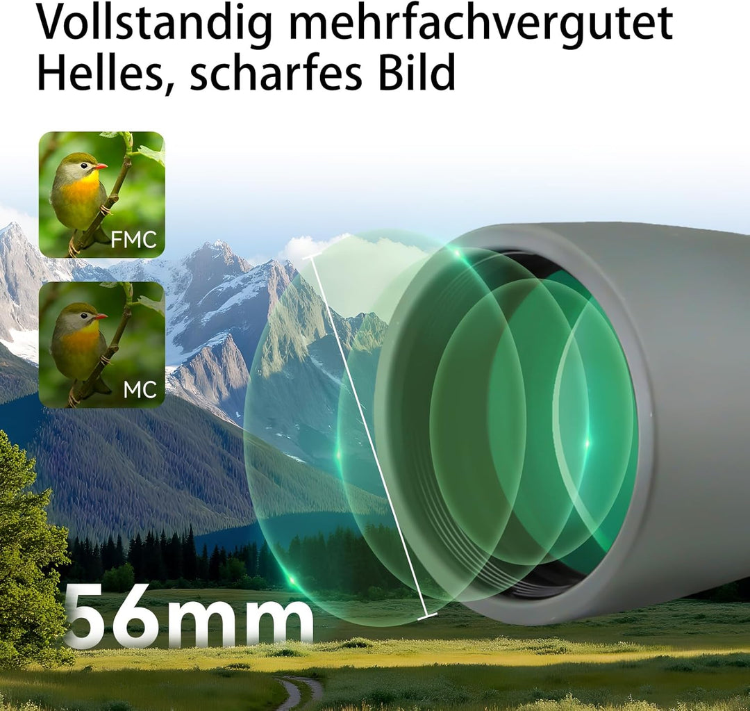 - Advanced FMC Lens; Die vollständig mehrschichtige Antireflexbeschichtung auf allen Luft-Glas-Oberflächen sorgt für maximale Lichtdurchlässigkeit; liefert ein helles;klares Sichtfeld