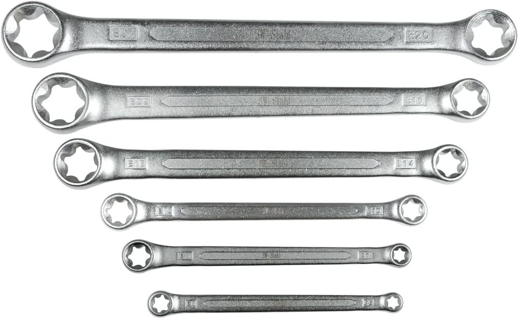 SW-Stahl 01560L Doppelringschlüssel-Satz E-Profil, E6-E24, 6-tlg. I Schraubenschlüssel für Torx-Schr