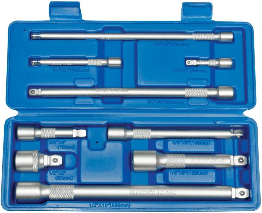 • Dieser Kippverlängerungs-Satz besteht aus 9 Verlängerungen, welche jeweils einen Antriebsvierkant von 1/4“, 3/8“ und 1/2“ Zoll haben.