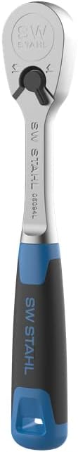 - Der 2-Komponenten-Griff bietet einen idealen Halt, wobei die ergonomische Form der Umschaltknarre zudem ein sicheres und gelenkschonendes Arbeiten ermöglicht. Am Knarrenkopf der Werkzeug Knarre, befindet sich eine Hebel-Umschaltung für den Rechts- und