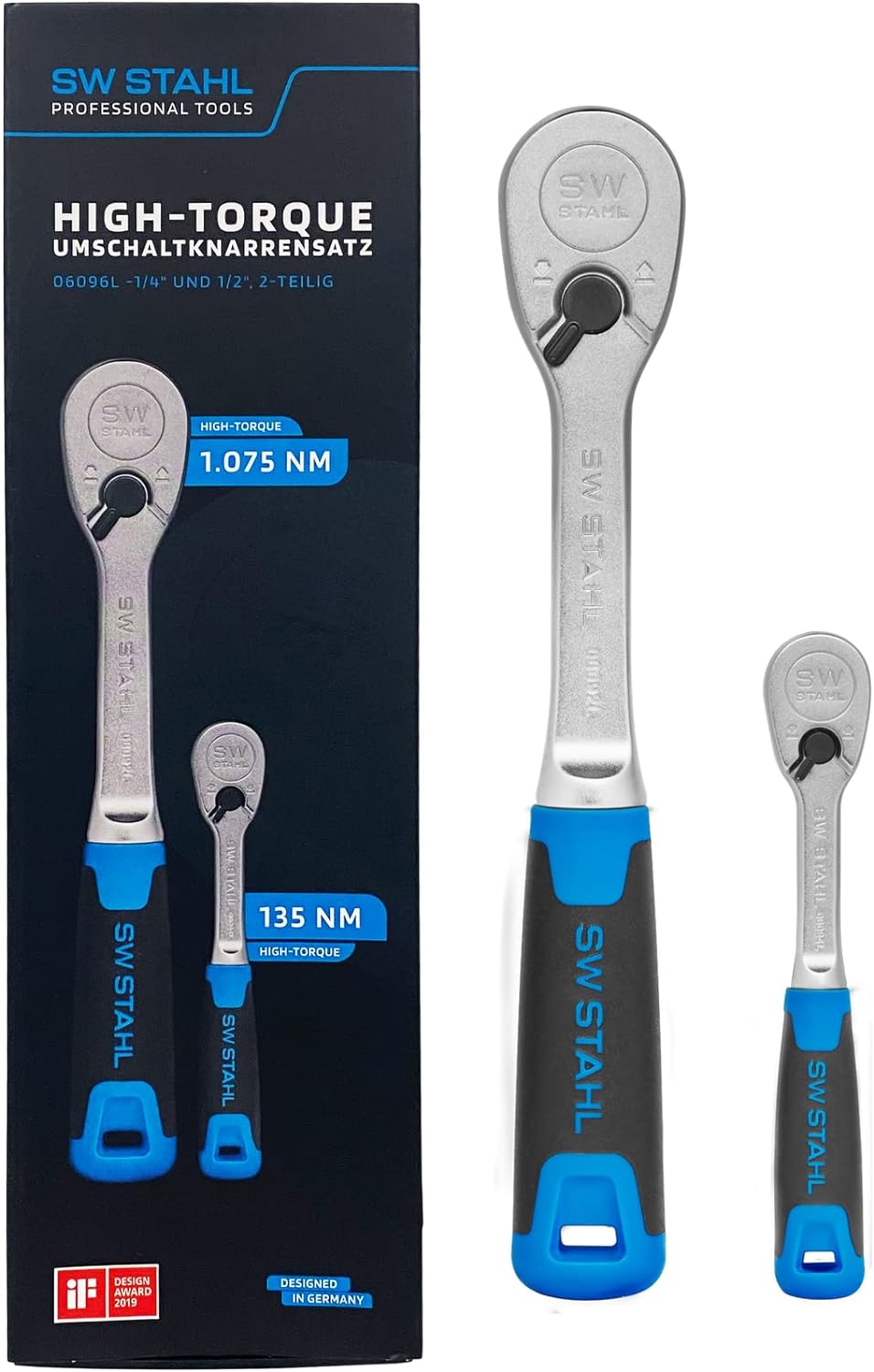 SW-Stahl 06096L Umschaltknarrensatz 2-teilig I 1/4 und 1/2 Zoll Ratsche bis zu 1.075 Nm I High Torqu
