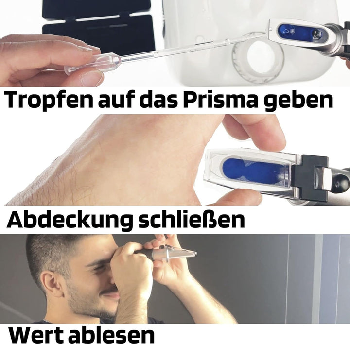 • Zudem ist das Refraktometer geeignet um das korrekte Mischungsverhältnis von AdBlue (AUS32) zu bestimmen.