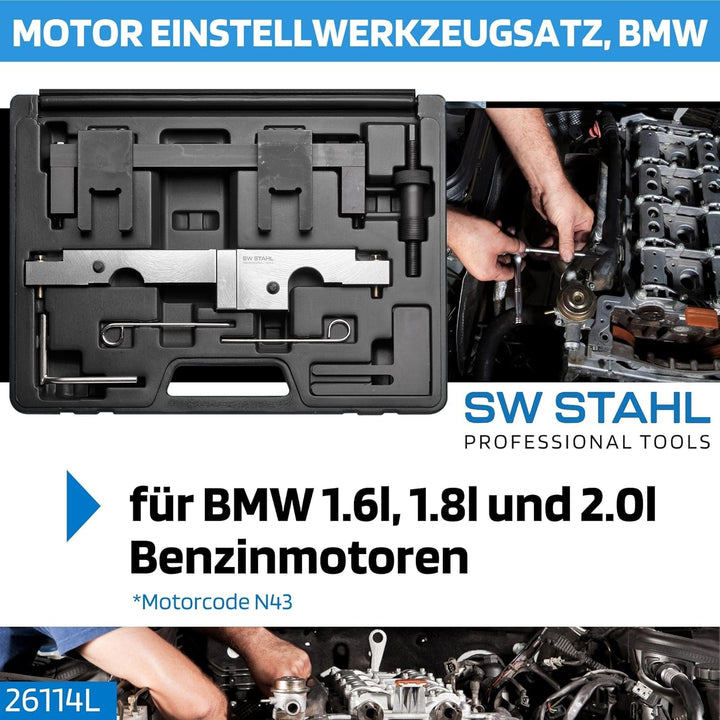 - Das Werkzeug ist geeignet für BMW Fahrzeuge mit 1.6l, 1.8l und 2.0l Benzinmotoren mit Motorcode N43.
