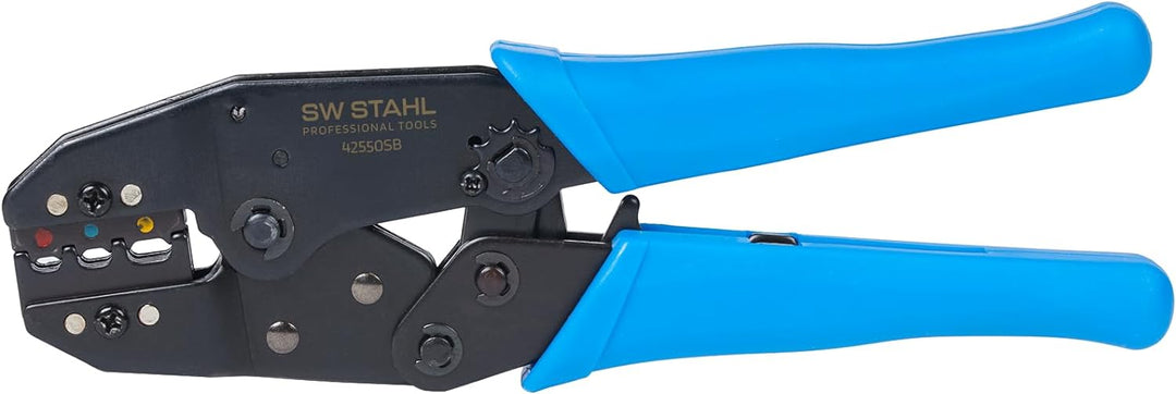 - Mit einem Kabelquerschnittsbereich von 0,5 mm² bis 6 mm² ist diese SW-Stahl 42550SB Kabelschuh Klemmzange ideal für eine Vielzahl von isolierten Verbindern geeignet.