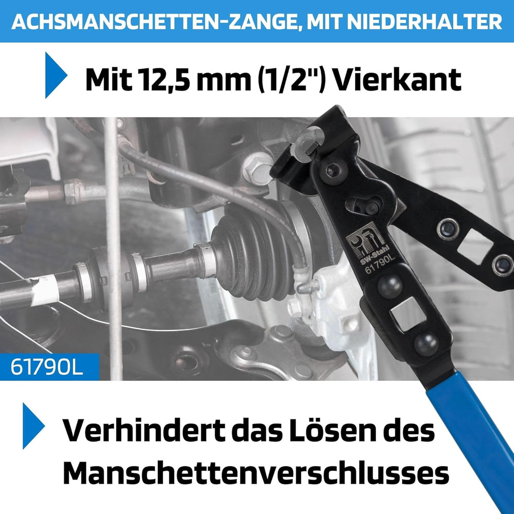 - Gefertigt aus hochwertigen Materialien, bietet die SW-Stahl Achsmanschette Zange eine robuste und dauerhafte Lösung für Ihre Werkstatt oder Garage.