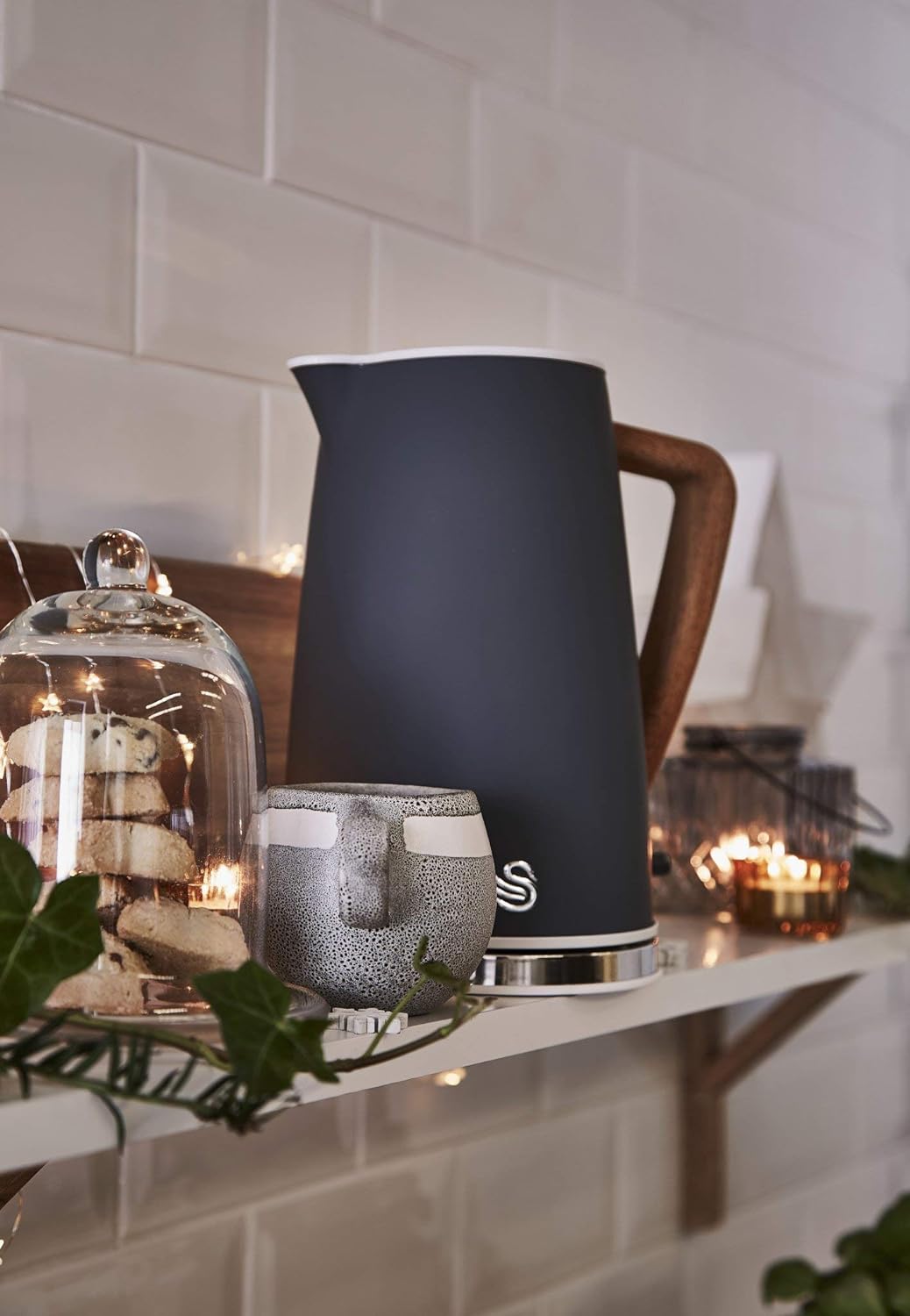 - Die Eleganz und Raffinesse der nordischen Swan-Serie vereint Stil und Funktionalität. Es ist die perfekte moderne Teekanne für die minimalistische Küche. Hergestellt aus Edelstahl mit matter Oberfläche "Soft Touch" in Schiefergrau mit Griff in