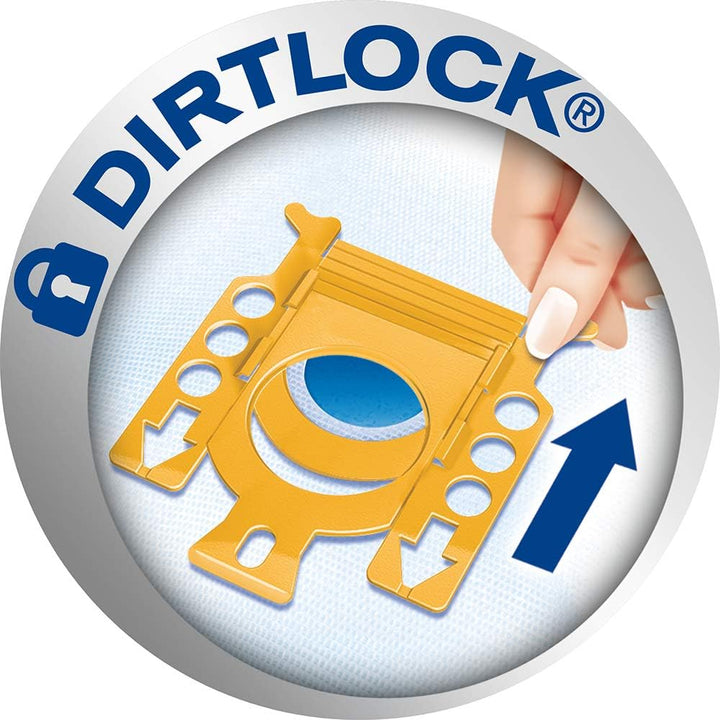 - SICHER: Der Dirtlock-Verschlussmechanismus sorgt dafür, dass der Staub beim Entsorgen des Staubsaugerbeutels im Beutel bleibt