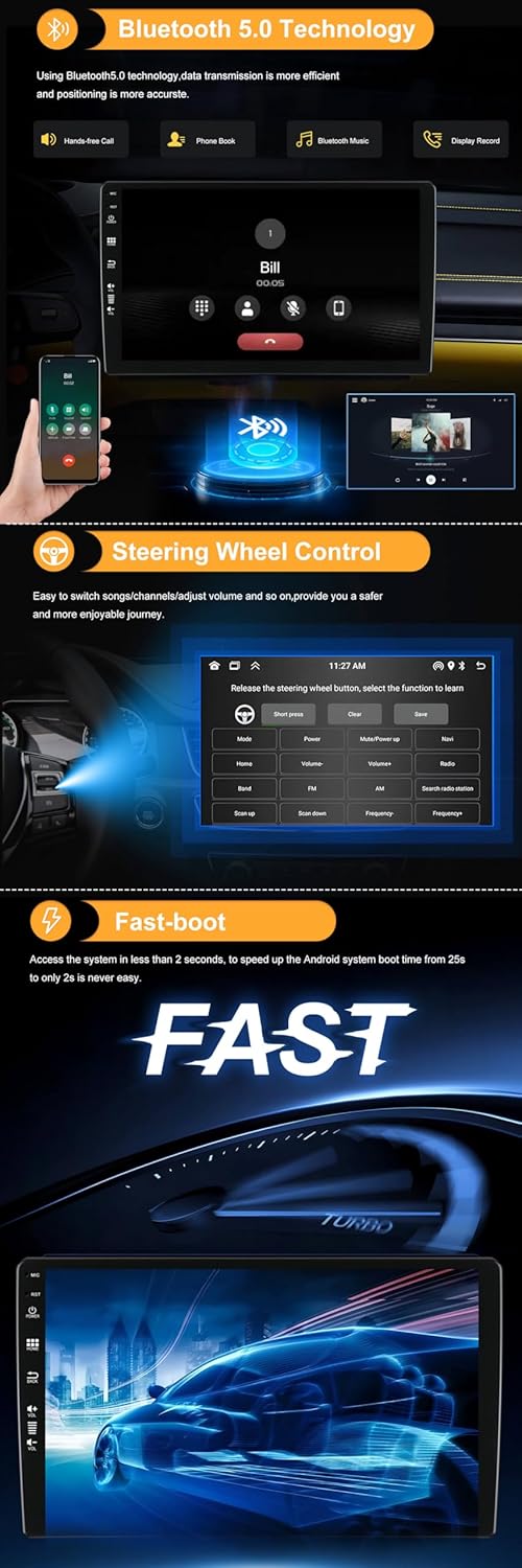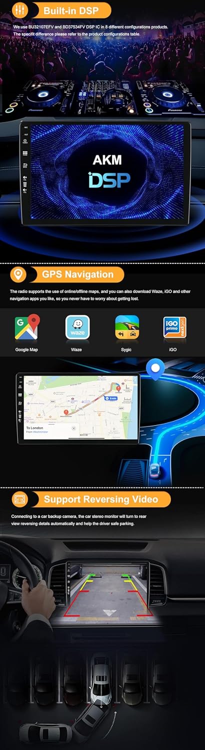 - 【HAUPTEIGENSCHAFTEN】 Bluetooth5.0-Freisprecheinrichtung / Medien-Streaming - AM/FM-Radioempfang / RDS - USB-/MicroSD-Speicher (max:256GB) - Online- und Offline-GPS-Navigationssystem - Full HD 1080P-Videowiedergabe - AV-Ausgangsfunktion -