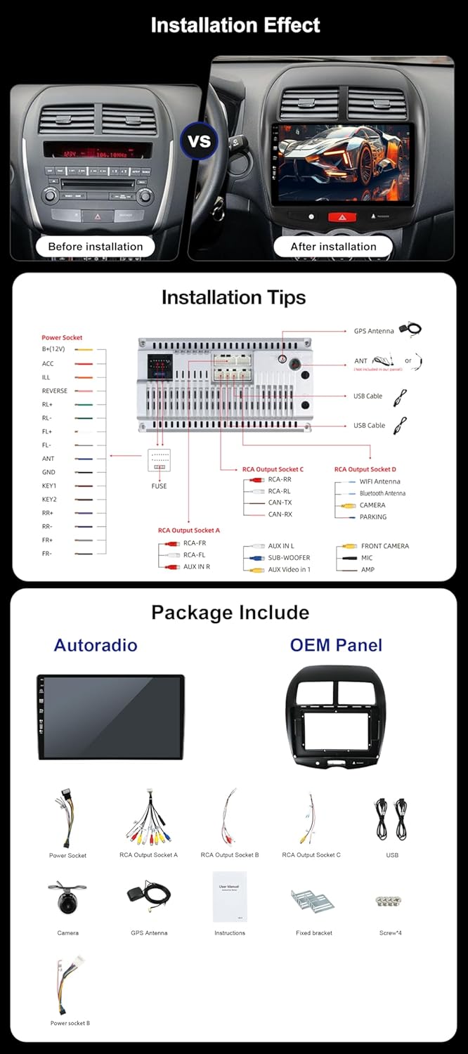 - 【 AUTOMODELLE 】 Perfekte Passform für Mitsubishi ASX (2010-2019). Wenn Sie nicht sicher sind, ob Ihr Auto für dieses Gerät geeignet ist oder nicht, kontaktieren Sie uns bitte, um Hilfe mit Bildern von Dashboard zu