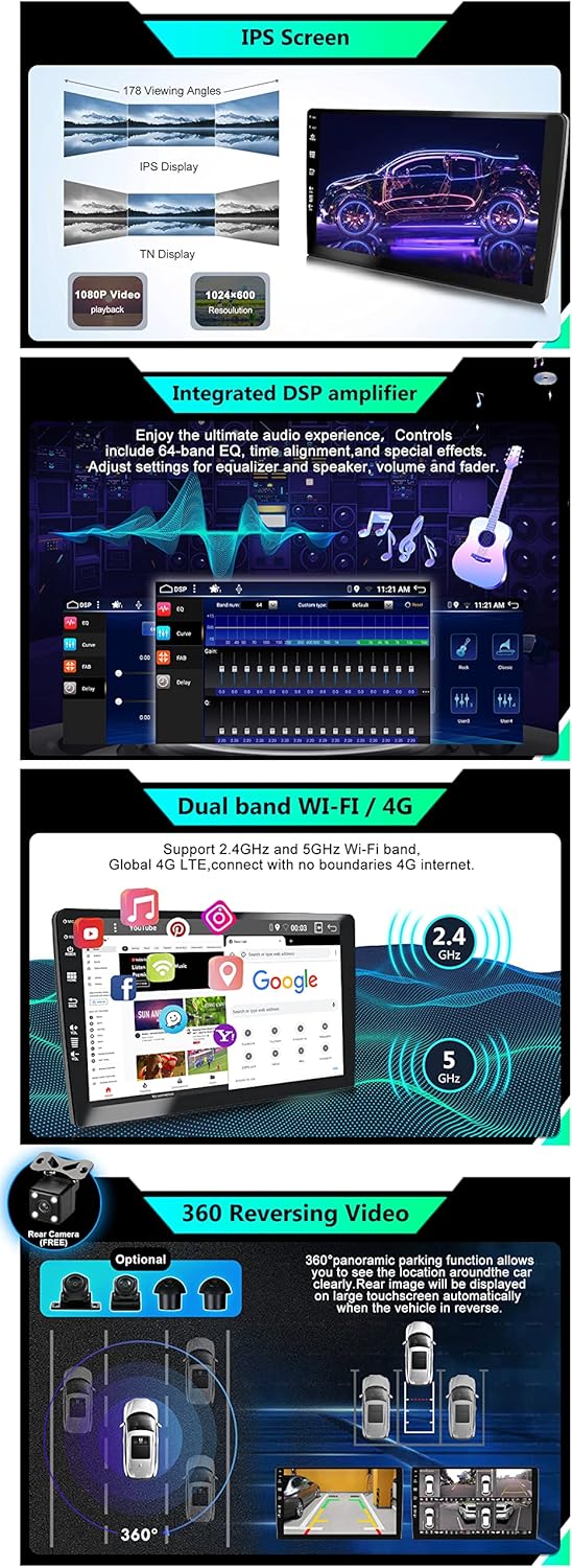 - 【DRAHTLOSES CARPLAY - ANDROID AUTO - DSP】①Integriertes drahtloses Carplay und Android Auto, unterstützt Funktionen Ihres Smartphones für die Verwendung im Auto, z. Sprachsteuerung mit Android Auto, Musikwiedergabe, Navigation, Telefonanrufe und
