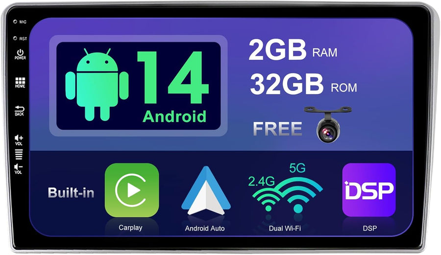 • 【ANDROID 12, 2G + 32G】①Android 12-System, neue Prozessor-Chipsatz-CPU (Quad-Core-Cortex-A7, bis zu 1,8 GHz. Mit 2G-RAM + 32G-ROM) für schnellere Reaktion, stabilere Leistung und leistungsstärkere Funktionen. ② GESCHENK: Rückfahrkamera.