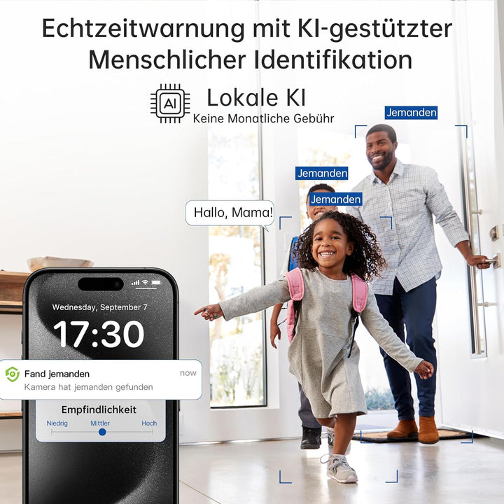 - 【Schnelle Ein-Tasten-Anrufe und Zwei-Wege-Audio】Unsere wlan-überwachungskamera bietet einfache zwei-wege-kommunikation. Drücken sie einfach die 'anrufen'-taste, um sofort mit ihren liebsten zu sprechen. Im notfall oder wenn ihre kinder oder ältere