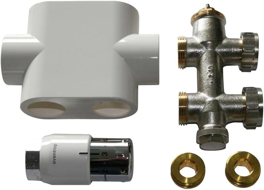 Heizkörper Mittelanschlussblock 1/2 Zoll DURCHGANG, SET inkl. Thermostat, FA. Oventrop, weiss