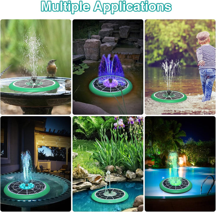 - 【🌏10 LED-Solarwasserbrunnen】Die Solar-Springbrunnenpumpe hat insgesamt 10 LED-Leuchten und die Springbrunnenpumpe leuchtet nachts automatisch mit wunderschönen RGB-Farblichtern. Die coole Beleuchtung und die einzigartige UFO-Form bringen Ihnen