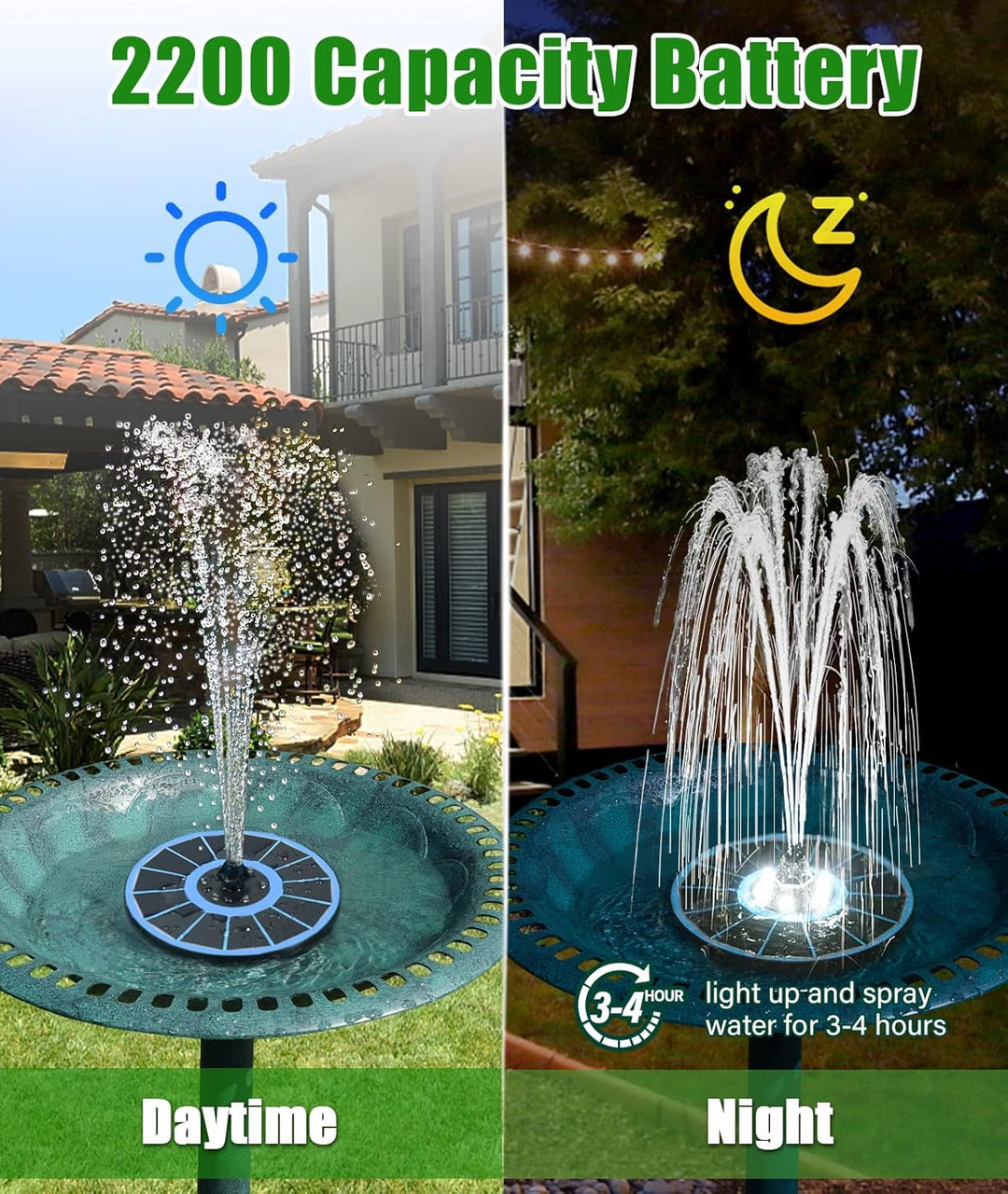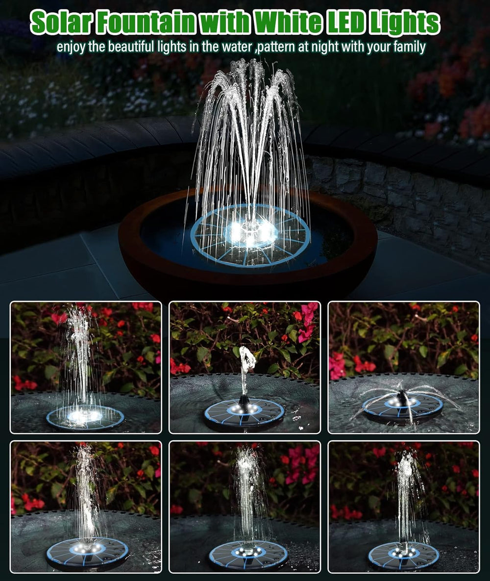 - 【💦8 verschiedene Wasserstile】Der Solar-Vogelbadbrunnen verfügt über 8 Düsen und kann Ihre unterschiedlichen Anforderungen an Wassersprühhöhen und -formen erfüllen. Der solarbetriebene Springbrunnen kann bei direkter Sonneneinstrahlung in 3