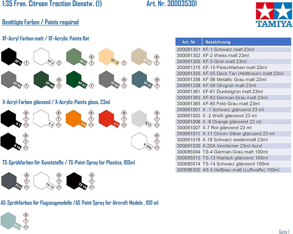 Tamiya 300035301-1:35 WWII Fr Citroen Traction Dienstwagen, originalgetreue Nachbildung, Plastik Bau