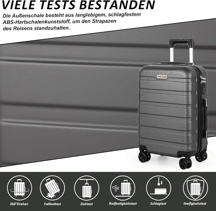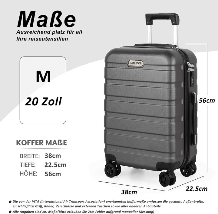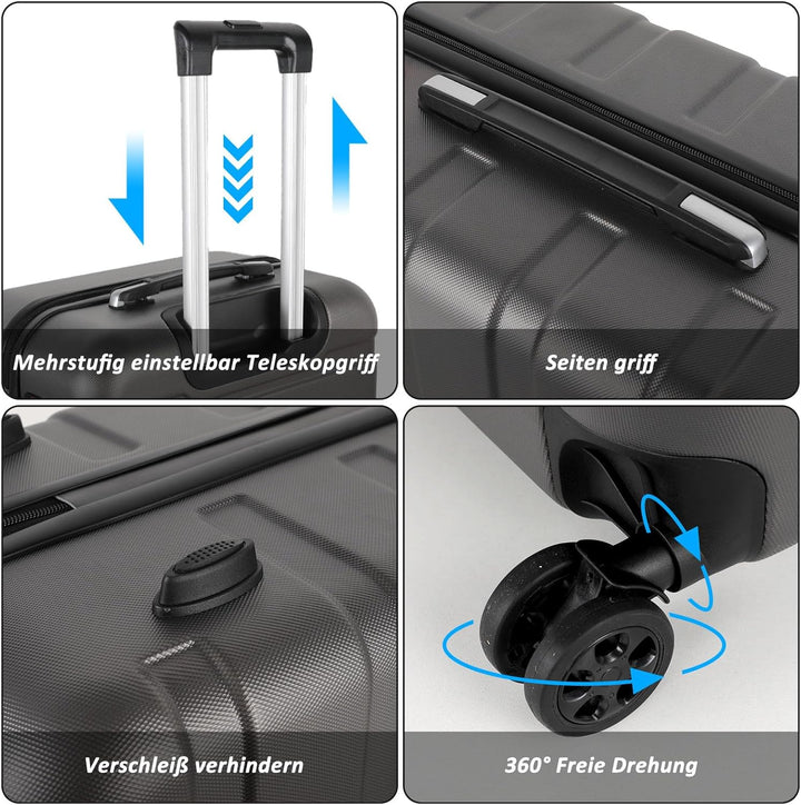 - ABS Koffer Hartschale + Aluminiumgriff: Unsere luggage sind aus hartem ABS Material gefertigt, sie sind stark, leicht und kratzfest. Der Aluminium Teleskopgriff lässt sich der Koffer bei geringem Kraftaufwand schieben oder ziehen.