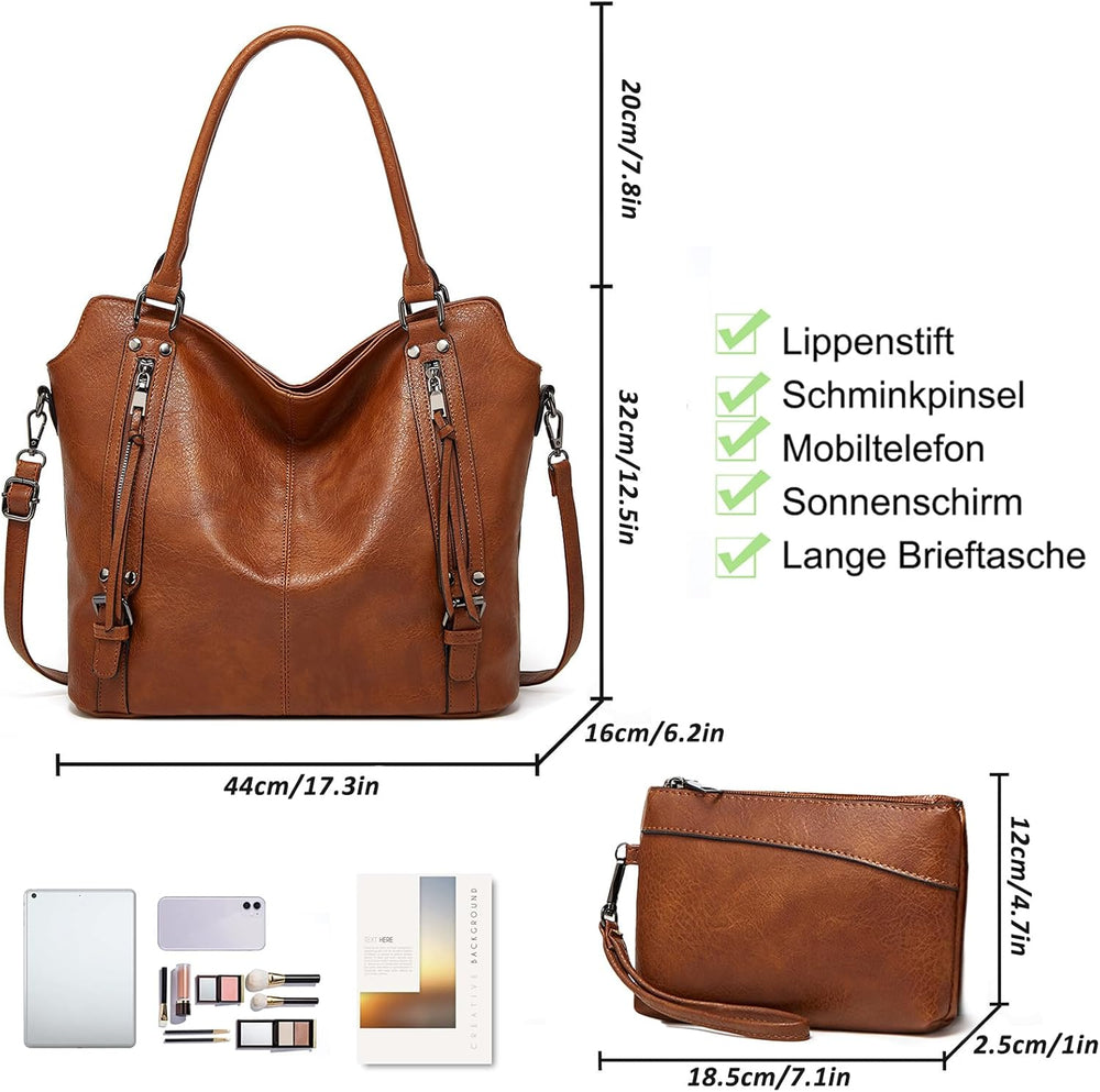 - 【GRÖSSE】: 32*44*16cm(Schultertaschen)18*12*2.5cm(Geldbörse), Verstellbarer langer Schultergurt Länge: 69-130cm. Gesamtgewicht: Etwa 0,96 kg. Diese Umhängetasche für Frauen passt zu den meisten A4-Magazin, Buch, Regenschirm, Geldbörse,