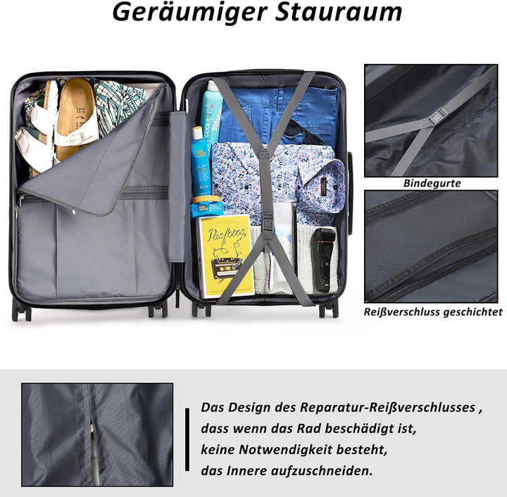 - Zahlenschloss: Die koffer mit 3-stellige passwortsperre, Mit integriertem Kombinationsschloss ist es einfach und bequem, Ihren Koffer während der Reise zu sperren und zu entsperren, schützen Sie Ihre Wertsachen vor Verlust.
