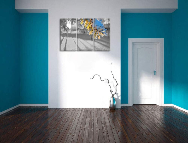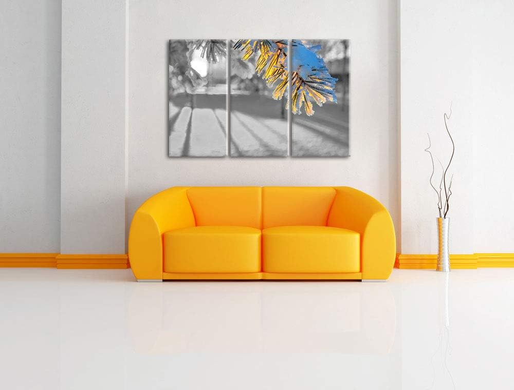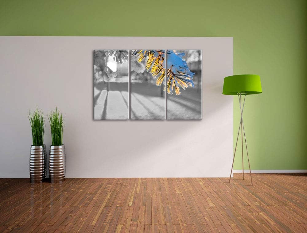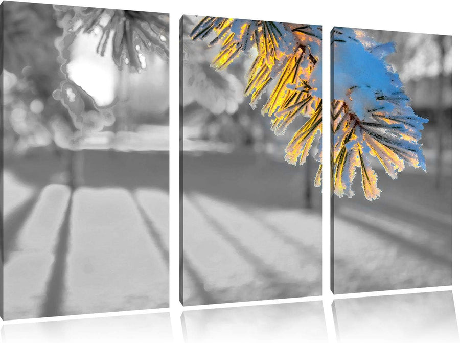 Tannenzweig im Winterwald schwarz/weiss 3-Teiler Leinwandbild 120x80 Bild auf Leinwand, XXL riesige