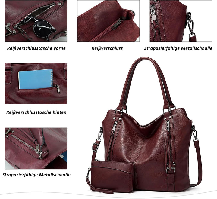 PRODUKTBESCHREIBUNGEN DAMEN MUST-HAVES HANDTASCHEN-CLASSIC SERIES Schlicht im Design, edel und stylisch Grosse Kapazität, tragen Sie alles, wenn Sie einkaufen, verabreden, reisen oder arbeiten Einfach mit jedem Stil zu kombinieren, alltägliche Geldbörsen Utility-Tasche, Tote, Crossbody, Clutch-Brieftasche, nennen Sie es wie Sie wollen Handtasche Damen Shopper Gross Damen Tasche Umhängetasche Schultertasche Geldbörse Tragetasche 2pcs Gross shopper: 32*44*16cm, Kurze Grifflänge: 48cm, Einstellbarer abnehmbarer langer Schultergurt: 69-130cm. Gewicht: 0.96kg. Geldbörse-CLUTCH: 18*12*2.5cm.