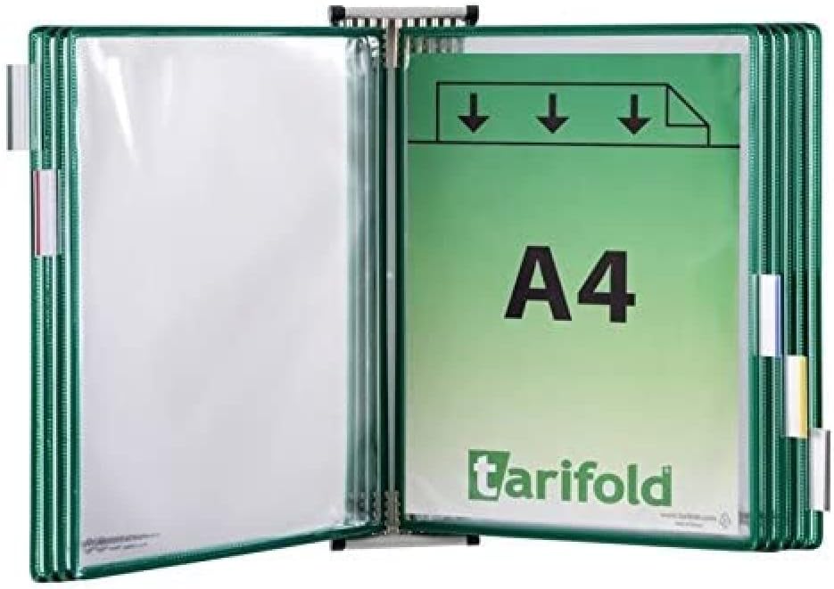 Tarifold Fr 414105 – Wandhalterungsset aus Metall mit 10 Hüllen, A4, PVC, Rahmen, Grün
