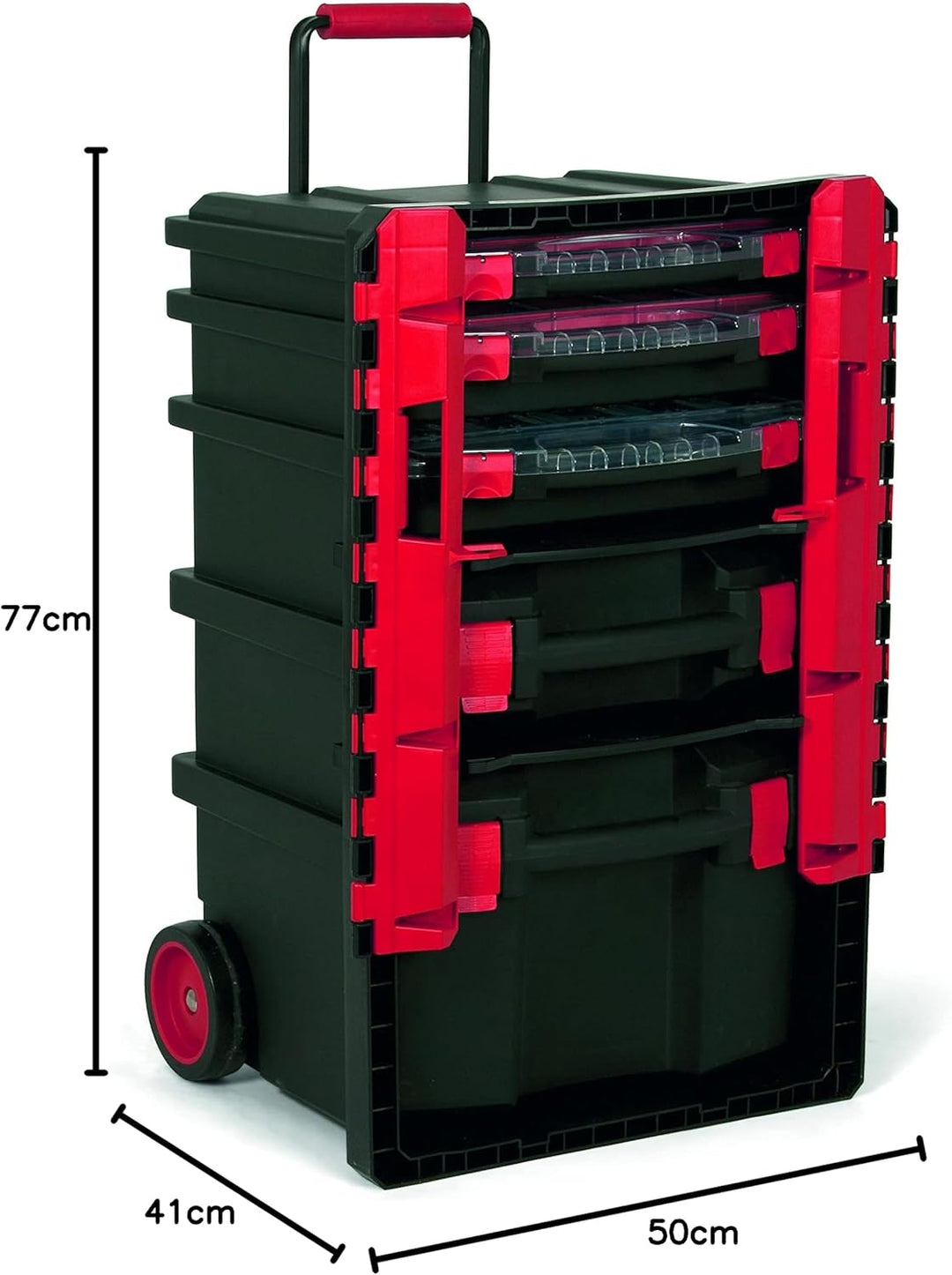 - Technische Details: Masse 500 x 410 x 770 mm / Material: Polypropylen / Farbe: Schwarz und Rot