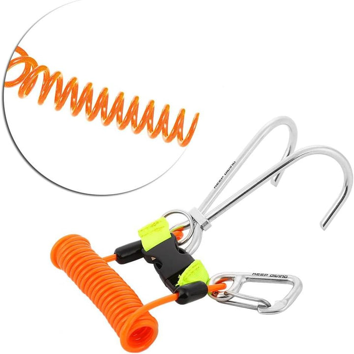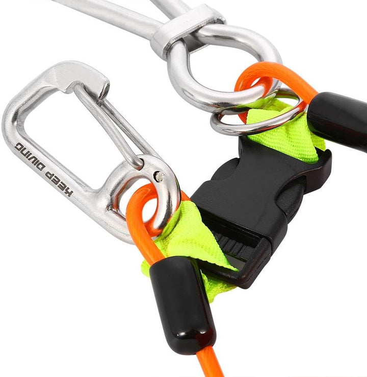 • 【Tauchen Reef Hook】 - Tolles Accessoire für Unterwasseraktivitäten, für mehr Sicherheit. Ausgestattet mit einem Schnellverschluss, kann schnell in D-Ring geklammert werden. Frühling Lanyard elastische Länge: Ca. 1,5 m / 59 inch. Gewicht: Ca. 174g