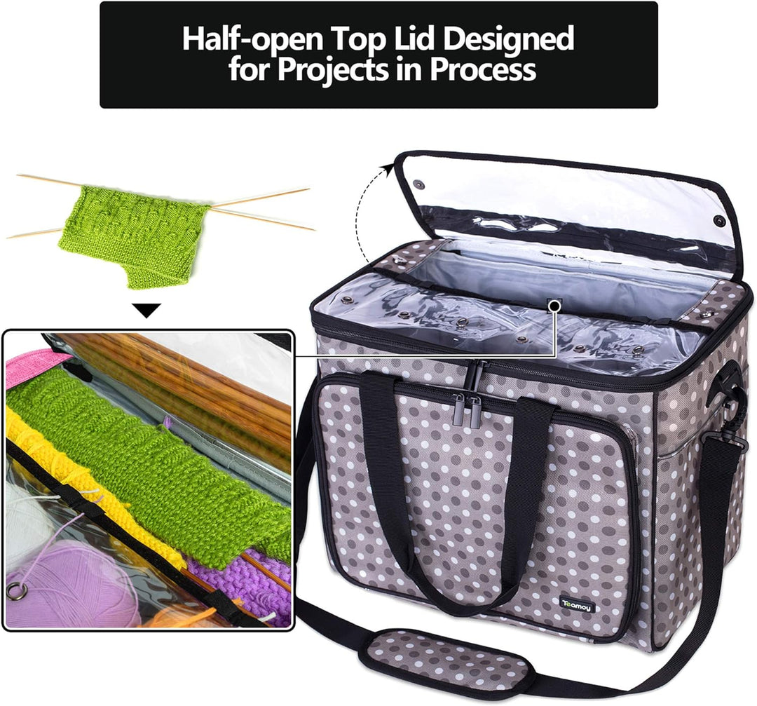 - KLAR OBEN: Die flexible und klare PVC-Abdeckung ermöglicht es Ihnen, leicht zu sehen, was innen ohne Öffnen der Tasche. Die 6 kleinen Löcher für verschiedene Farben des Garns zum Durchfliessen. 3 Sätze Klettstreifen halten Garn an Ort und Stelle,