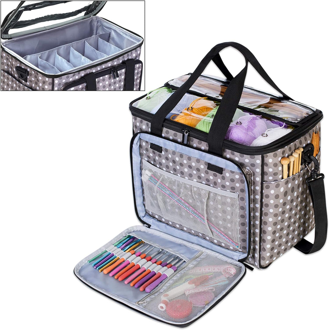 - GERÄUMIGE INNENRAUM MIT MEHRFACHEN TASCHEN: 6 kleines Fach mit passenden Löchern auf der Oberseite ist grossartig, um die Fäden des Garns getrennt zu halten und das Reissen, das Verheddern oder das Ausfransen zu verhindern.