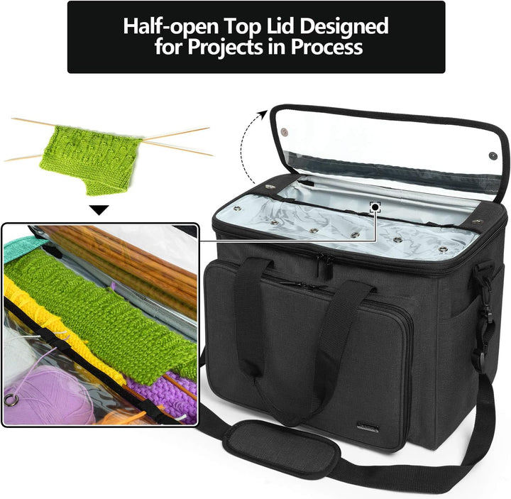 - KLAR OBEN: Die flexible und klare PVC-Abdeckung ermöglicht es Ihnen, leicht zu sehen, was innen ohne Öffnen der Tasche. Die 6 kleinen Löcher für verschiedene Farben des Garns zum Durchfliessen. 3 Sätze Klettstreifen halten Garn an Ort und Stelle,