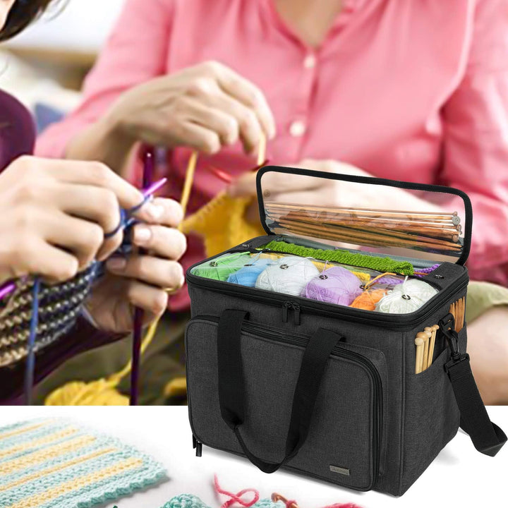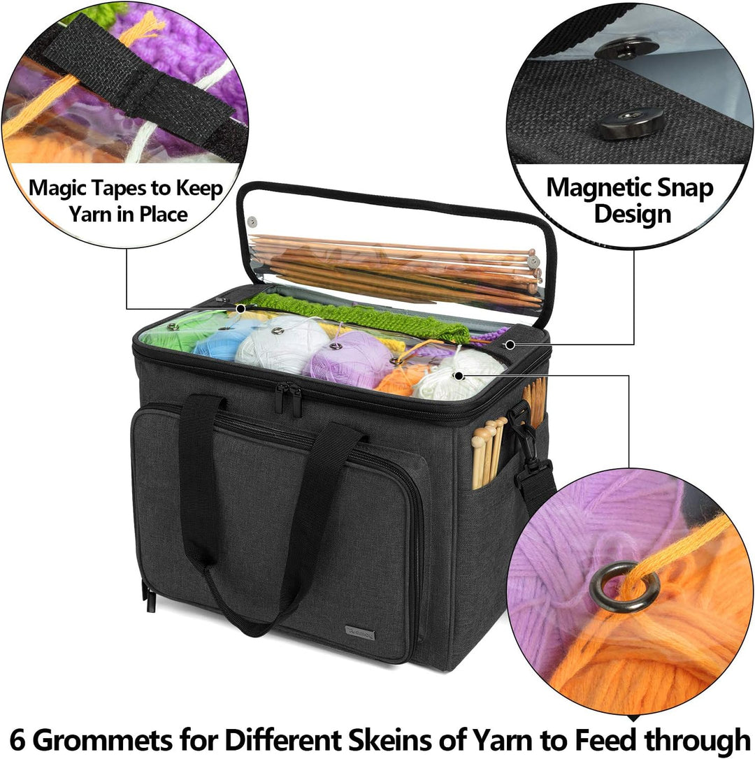 - GERÄUMIGE INNENRAUM MIT MEHRFACHEN TASCHEN: 6 kleines Fach mit passenden Löchern auf der Oberseite ist grossartig, um die Fäden des Garns getrennt zu halten und das Reissen, das Verheddern oder das Ausfransen zu verhindern.