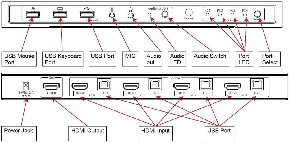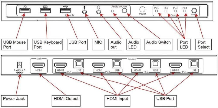- TECHly IDATA-KVM-HDMI4U 4 Port KVM-Umschalter HDMI USB 3840 x 2160 Pixel