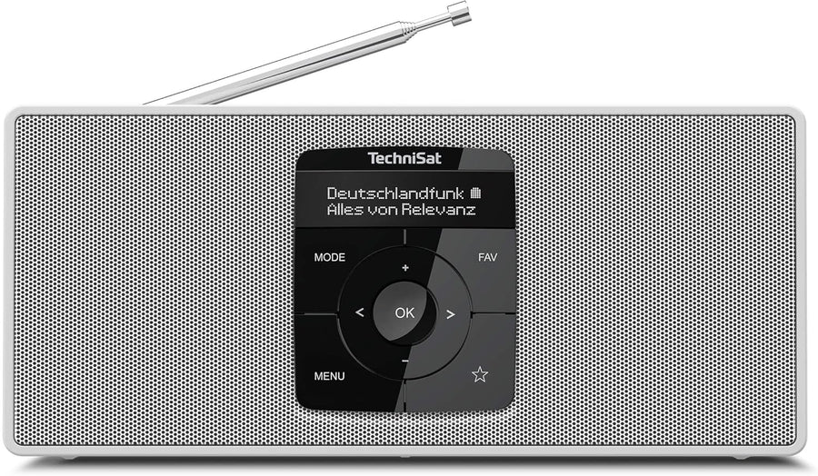 • Lieferumfang: 1 x TechniSat DIGITRADIO 2 S, Weiss/Weiss, Akkupack, Netzteil, Bedienungsanleitung, Gewicht: 490 g, Abmessungen (BxHxT): 24,5 x 10,9 x 4,7 cm