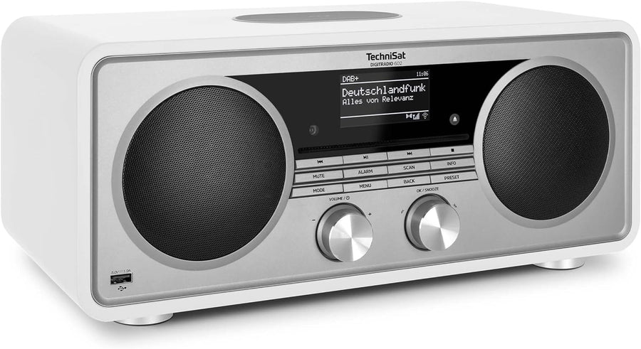 • Lieferumfang: TechniSat DIGITRADIO 602, weiss, DAB/UKW Teleskop-Antenne, F-Stecker-Werkzeug (für die abnehmbare Antenne), Netzteil, Fernbedienung, Bedienungsanleitung, Produktmasse (BxHxT):40 x 17 x 21,50 cm