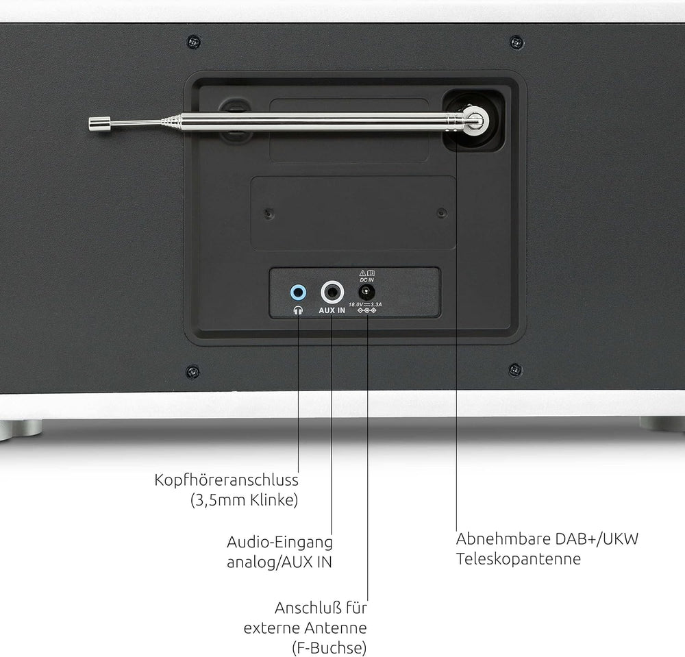 • Vielseitiges Digitalradio: Digitaler und analoger Empfang von Radiostationen per DAB, FM oder weltweiter Internetradiosender Zusätzlich kann Musik über AUX-In, CD-Spieler, Bluetooth Audiostreaming und Streaming via Spotify Free abgespielt werden