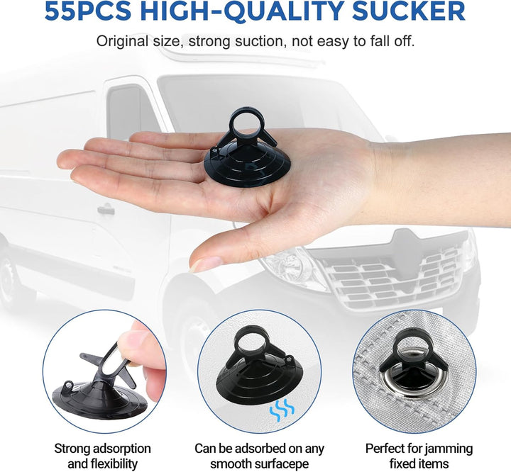 - Einfache Installation: Die Matte wird mittels Gummisaugnäpfen direkt am Glas befestigt, wodurch eine 100%ige Reflexion ermöglicht wird und das Fahrzeug nicht mit Haken verschmutzt werden muss. Für einen optimalen Halt der Saugnäpfe sollten sie mit