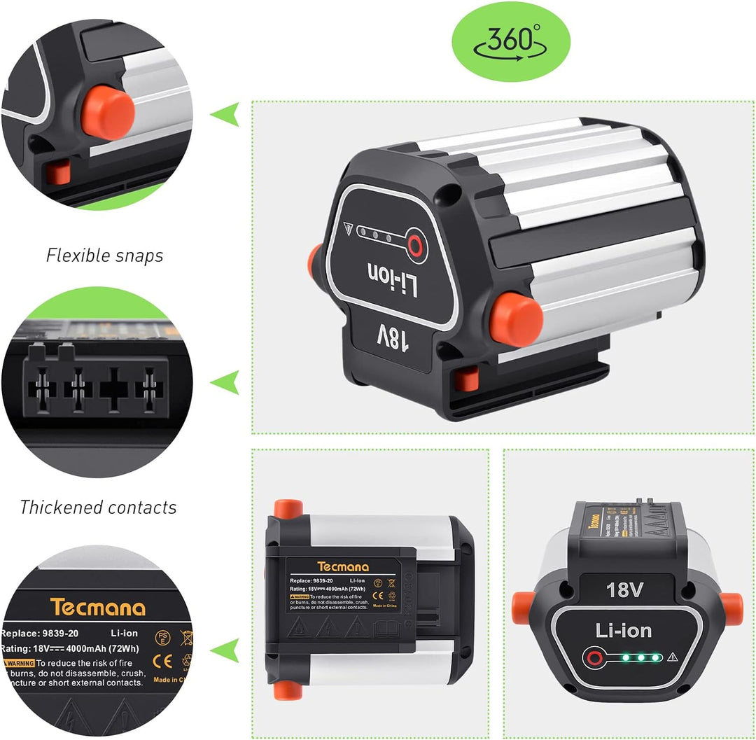- Kapazität: 4000mAh, Spannung: 18V, Energie-Leistung: 72Wh, Zell-Typ: Lithium-Ionen, Rechargeable