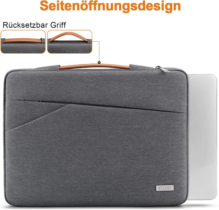 • Robuster Reissverschluss und einziehbarer Griff: Alle Taschen der 15 Zoll Laptoptasche sind mit einem glatten, haltbaren Metallreissverschluss verschlossen. Mit dem bequemen versenkbaren Griff kann die leichte Laptop hülle problemlos in Rucksack und