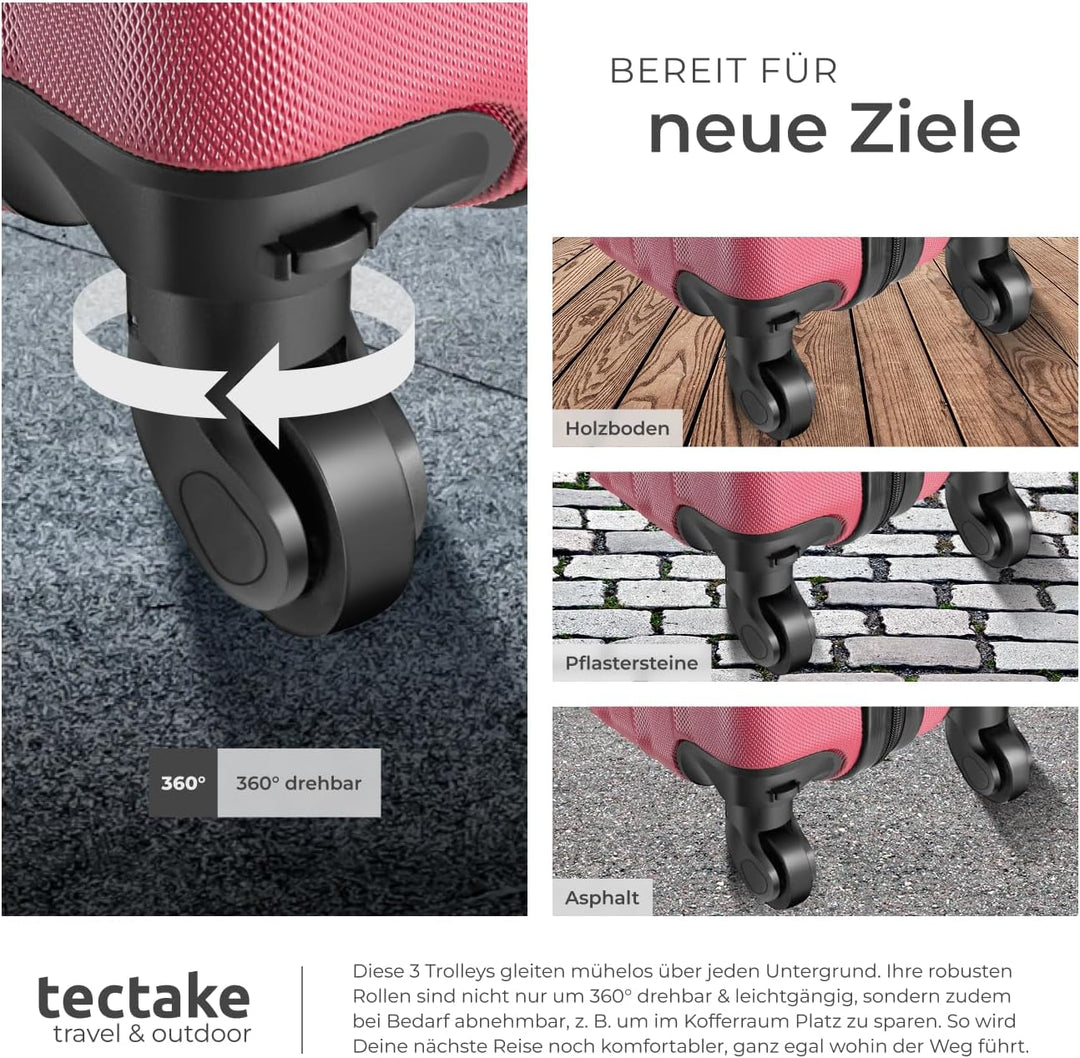 - ROBUSTE HARTSCHALEN: Unser 3-teiliges, ineinander stapelbares Kofferset ist perfekt für kleine und grosse Reisen. Die robuste Hartschale aus schlag-, kratz- und wasserfestem ABS-Kunststoff mit verstärkten Ecken bietet zuverlässigen Schutz. Das