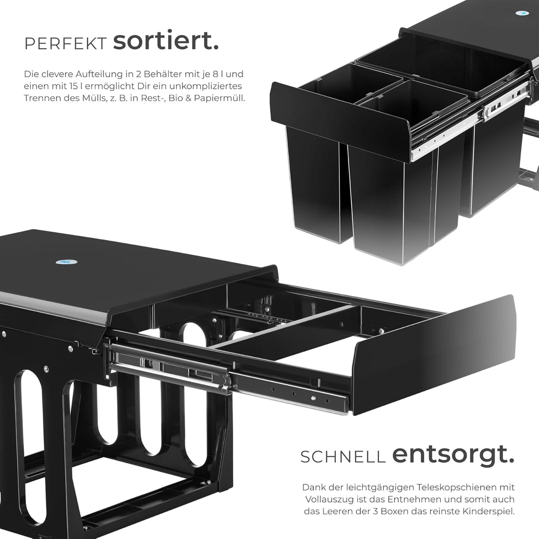 - MÜLLEIMER SCHRANK - SCHNELLE MONTAGE UND NACHHALTIGE FUNKTION: Der Küchen Mülleimer ist kinderleicht zu montieren und passt in nahezu jeden Standardschrank. Das Müllsystem Küche hilft Dir nicht nur bei der Mülltrennung, sondern macht Deine Zuhause